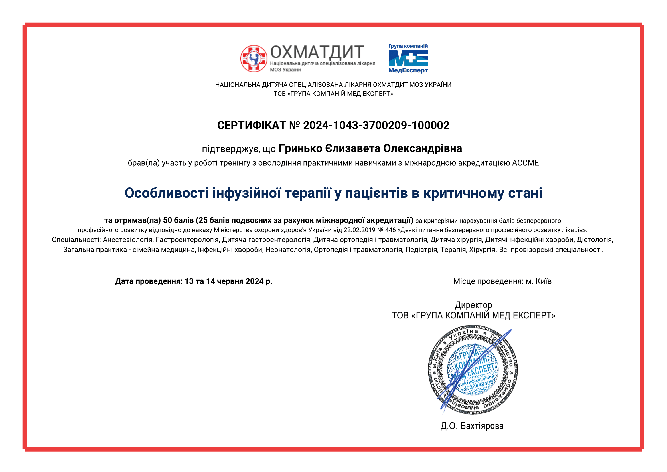 • Тренінг: “Особливості інфузійної терапії у пацієнтів в критичному стані” ,13-14.06.2024, ОХМАТДИТ, Київ