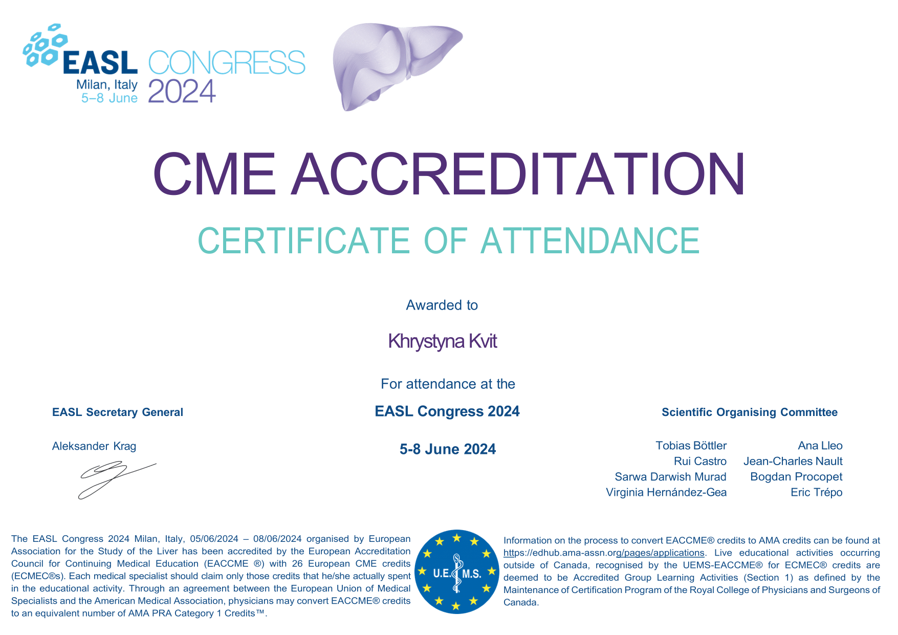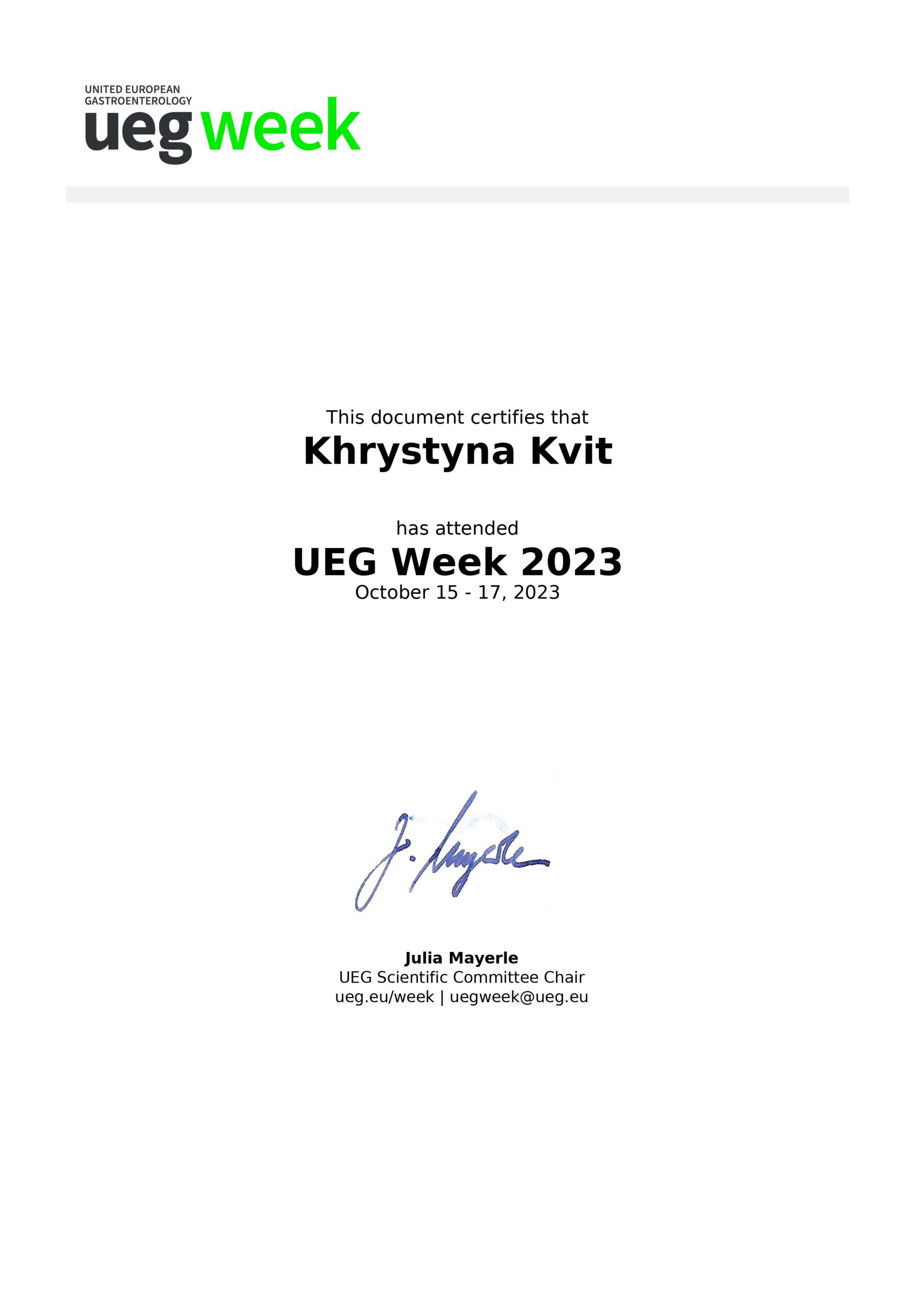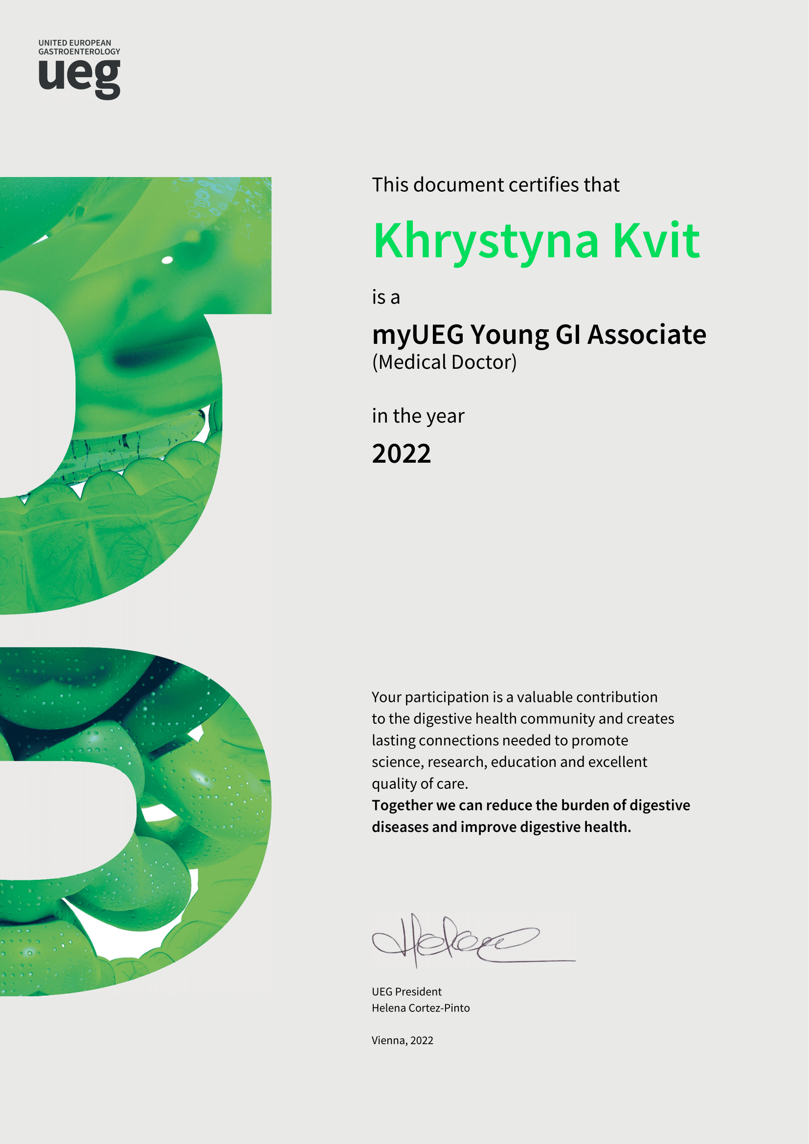 - Course of United European Gastroenterology Week Postgraduate Teaching Programme (Vienna, Austria 2022)