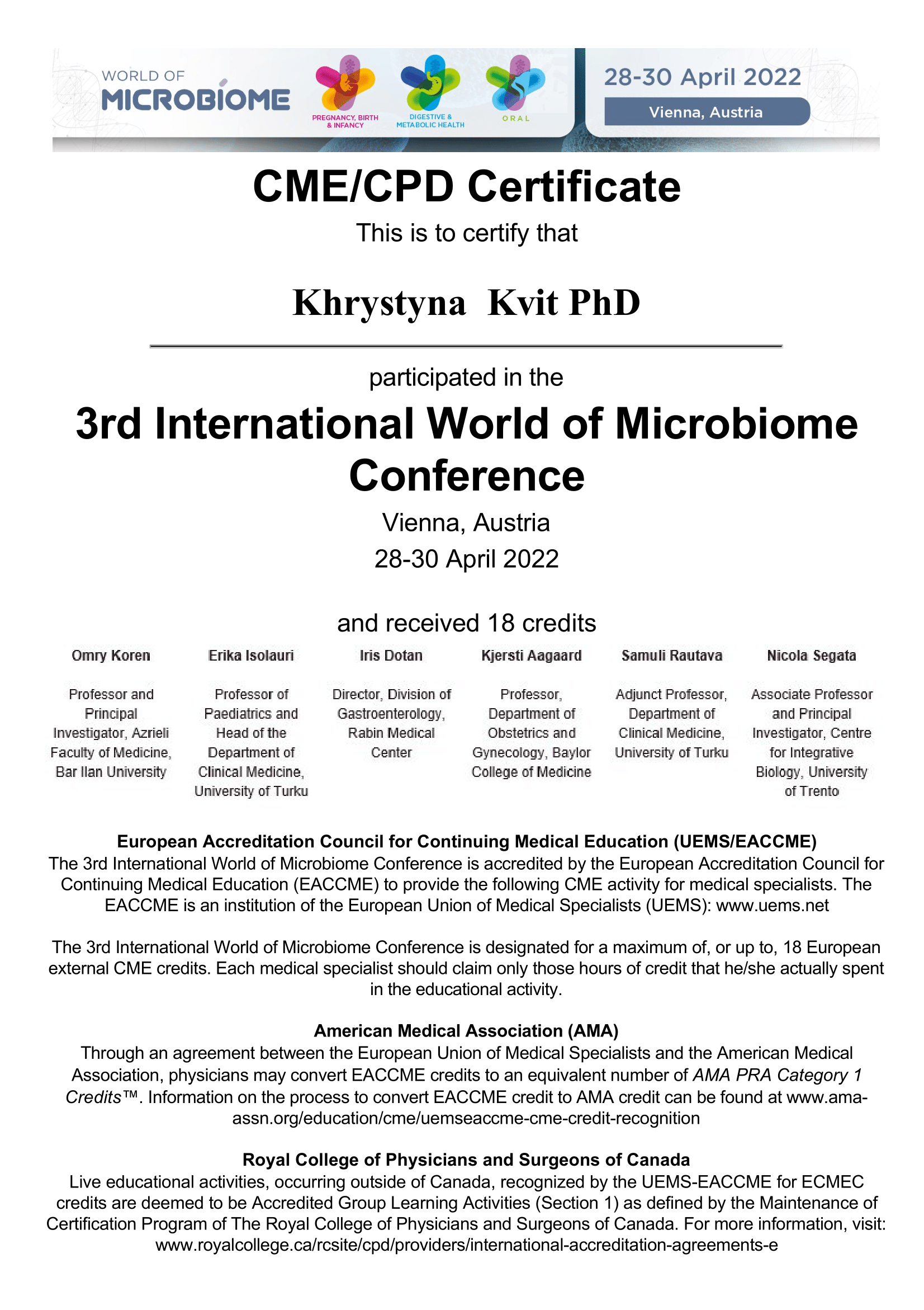 - World of Microbiome Conference (Vienna, Austria, 2022)
